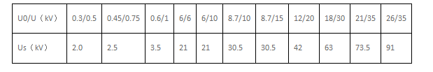 2、成品電纜應(yīng)經(jīng)受下表規(guī)定的交流電壓試驗5分鐘不擊穿。